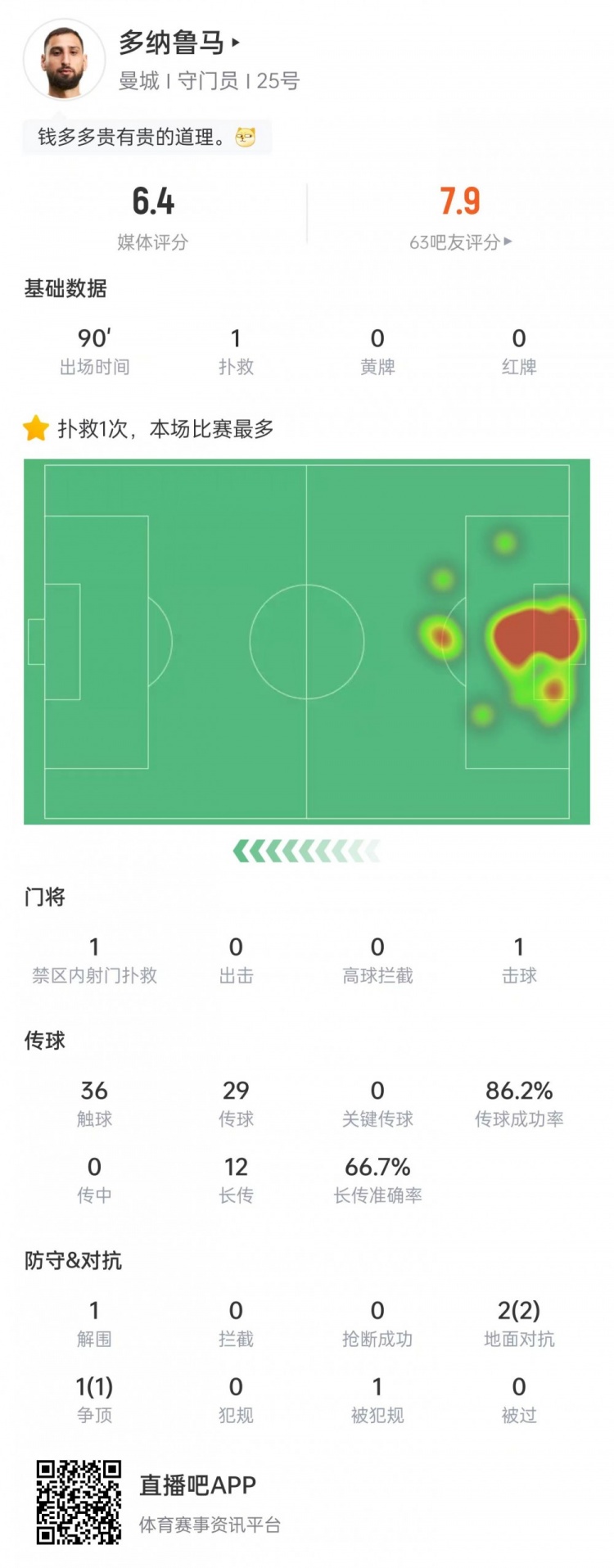 12月3日讯 英超第14轮比赛,多纳鲁马全场仅作念出1次扑救,曼城客场5-4打败富勒姆。