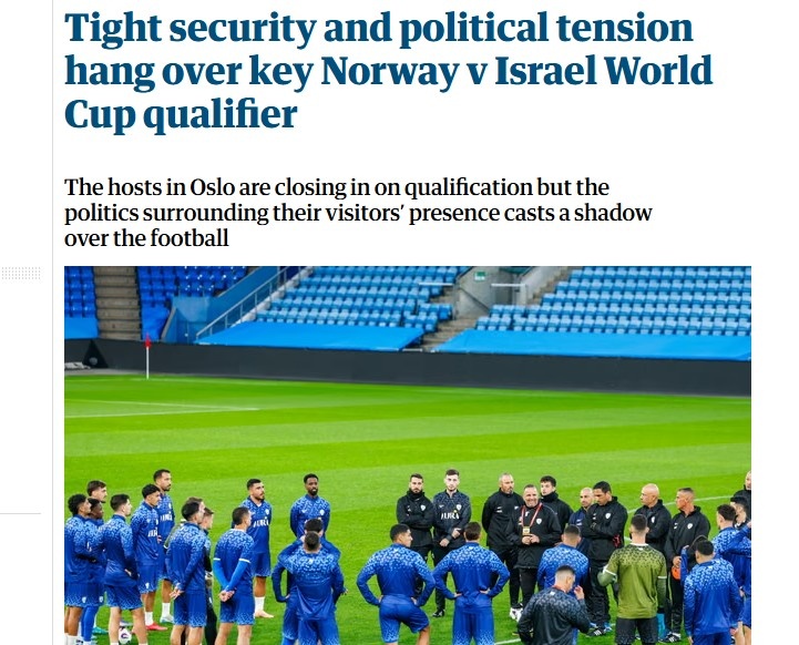 10月11日讯 《卫报》报说念,10月12日挪威vs以色列的世初赛,比赛场馆部分区域将被关闭。