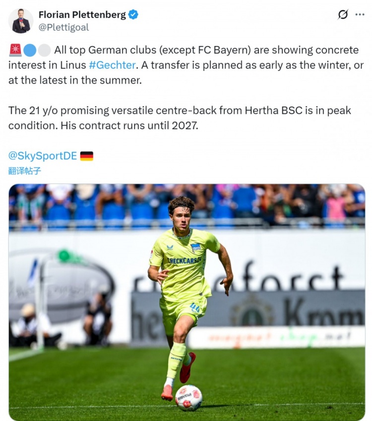10月15日讯 据德国天外体育报说念,多家德国顶级俱乐部稀零柏林赫塔21岁中卫盖赫特。