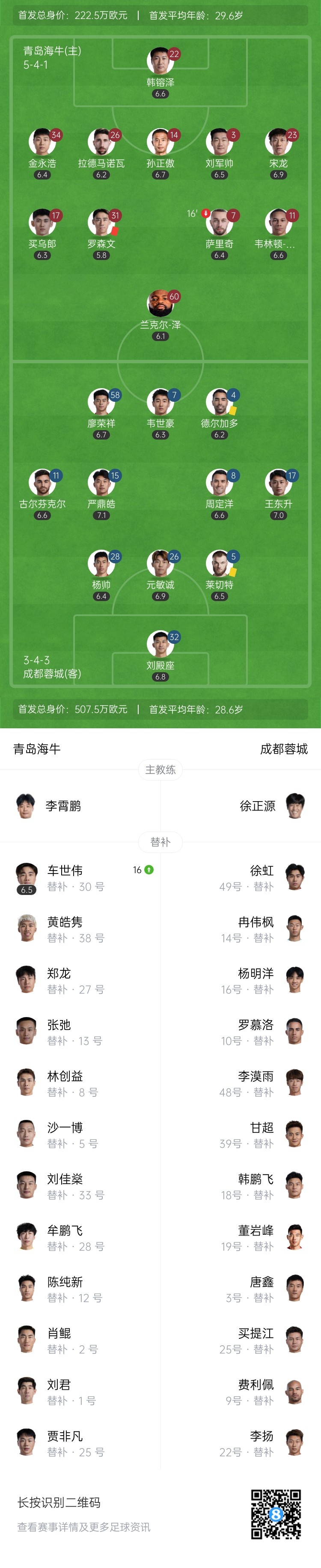 7月23日讯 北京本领19:30,足协杯1/4决赛青岛海牛vs成皆蓉城,比赛在青岛芳华足球场打响!上半场,萨里奇伤退;罗森文吃到红牌被罚出场!半场补时阶段,德尔增多也吃到红牌!两边各剩下10东谈主应战。半场放置,青岛海牛0-0成皆蓉城。
