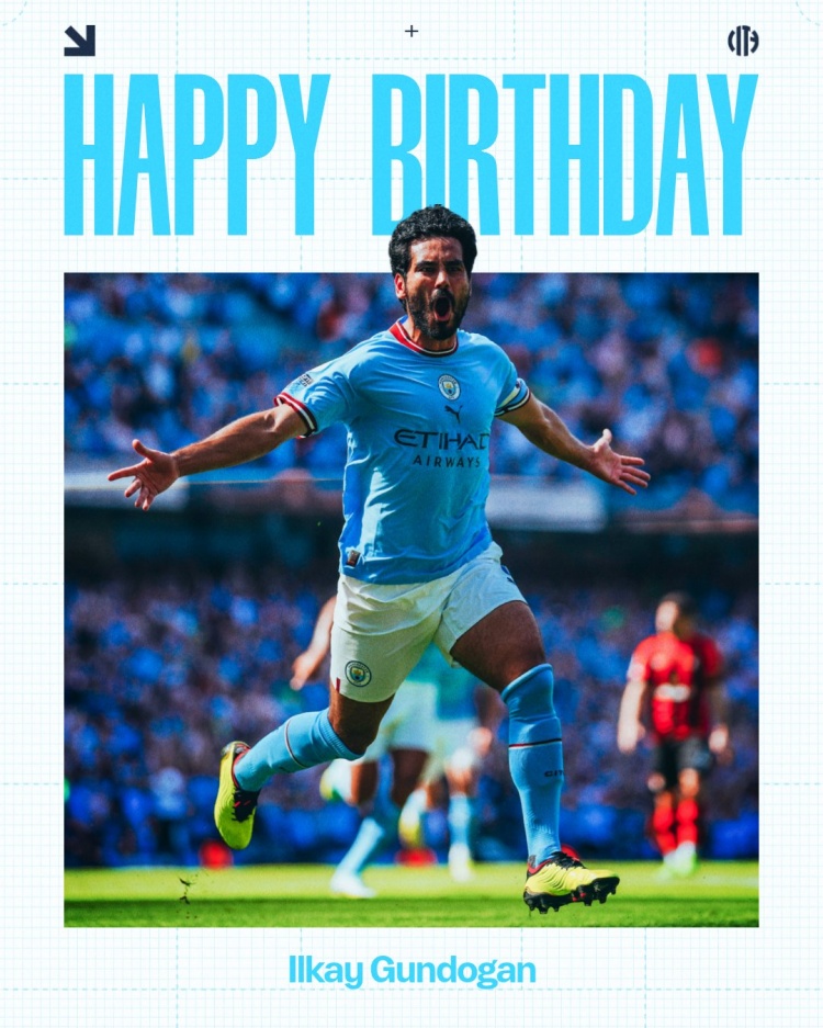 曼城官方社媒晒出京多安的诞辰海报,配文:“诞辰自尊,伊尔凯。”