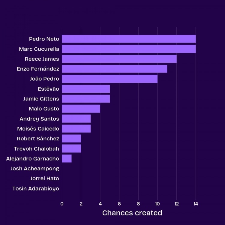 10月31日讯 数据机构squakwa统计了本赛季切尔西队内的英超创造契机情况,库库雷利亚和内托并排居首。