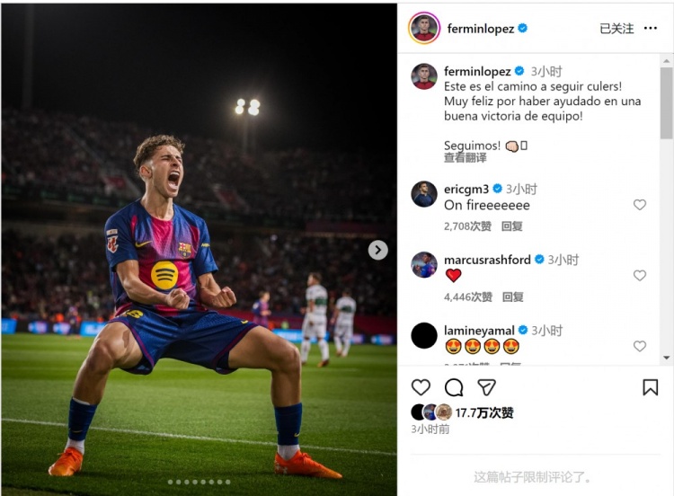 助攻双响!费尔明社媒晒款式庆祝像片:这即是前进的标的