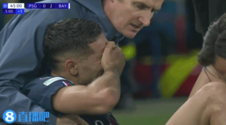 11月05日讯 欧冠巴黎vs拜仁上半场落拓前,阿什拉夫遭迪亚斯剪刀脚铲翻后坐地哀哭,径直伤退离场。