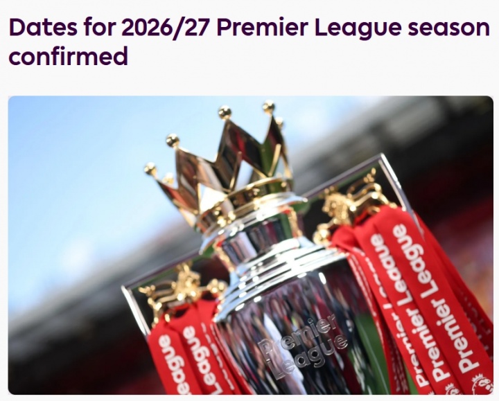 11月21日讯 英超官方音问,下赛季英超联赛将于2026年8月22日驱动,2027年5月30日戒指,据悉这是英超历史最晚的开赛日历。