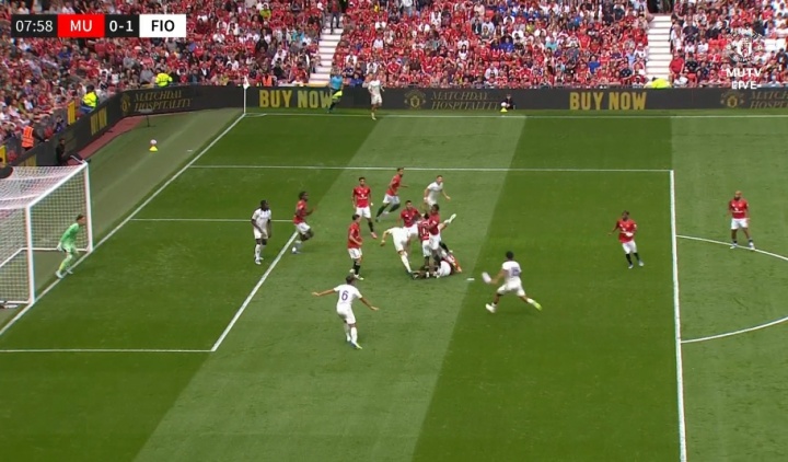 曼联开场8分钟0-1过期!角球疑望后点全空,索姆放荡推射破门