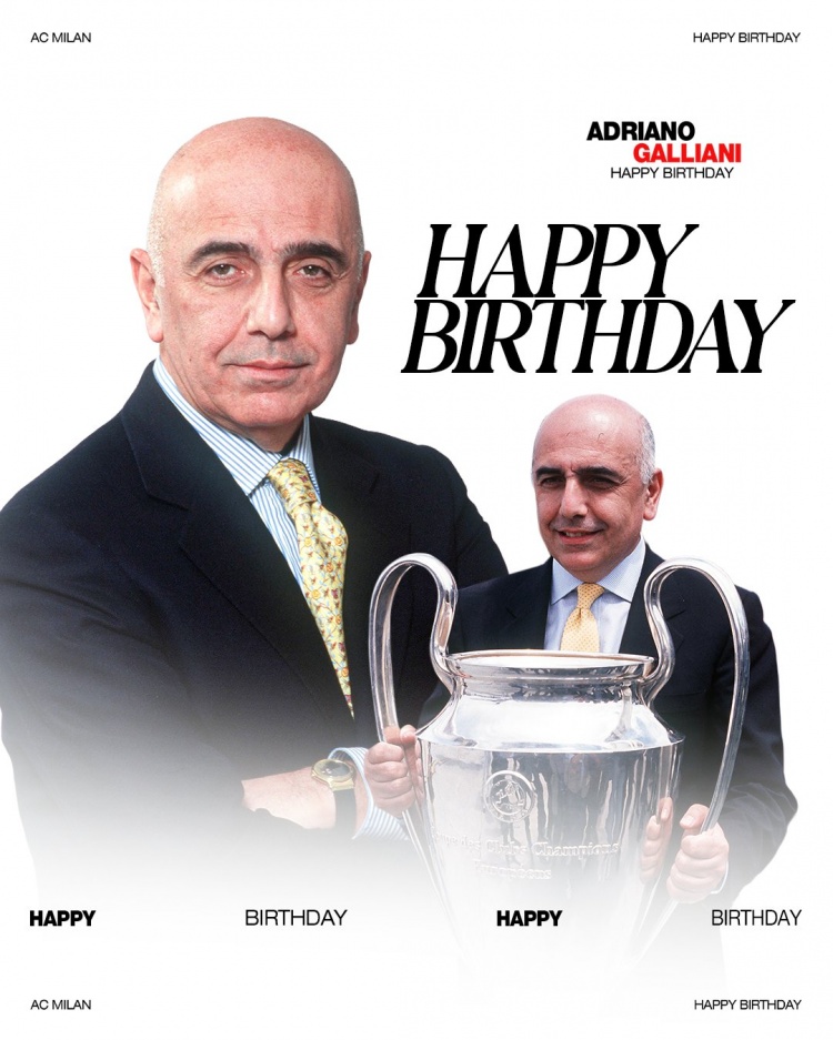 米兰官方社媒晒出为加利亚尼制作的诞辰海报,祝前俱乐部主席诞辰自高。