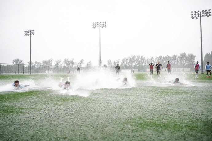 7月30日讯 申花官方晒照,球队在大雨中不绝锻练。
