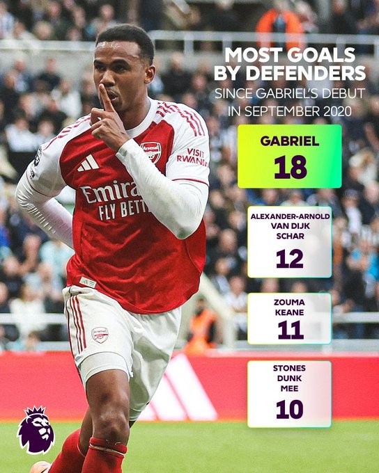 9月29日讯 数据涌现,自2020年9月演出英超首秀以来,阿森纳后卫加布里埃尔已成为同时联赛中进球最多的后卫,以18粒进球高居榜首。