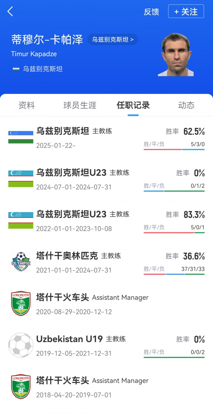据乌兹别克斯坦媒体最新报说念,自本年1月以来一直担任国度队主帅的卡帕泽的异日现在尚不暴露,有音讯称他将在新的老师组中赢得一个位置。