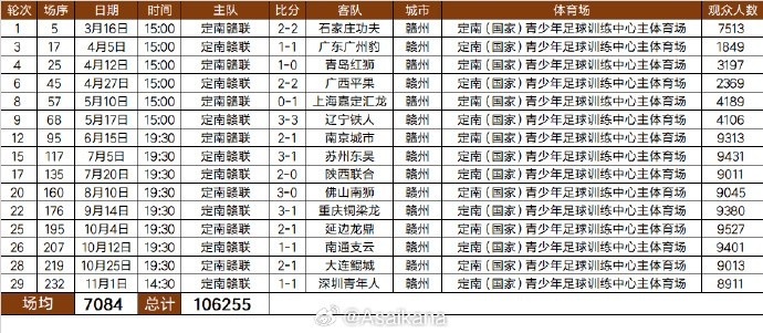 2025中甲联赛定南赣联队现场不雅世东谈主数统计:整个106255东谈主次,场均7084东谈主。