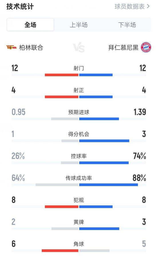 11月9日讯 2025-26赛季德甲联赛第10轮,柏林连系2-2拜仁。