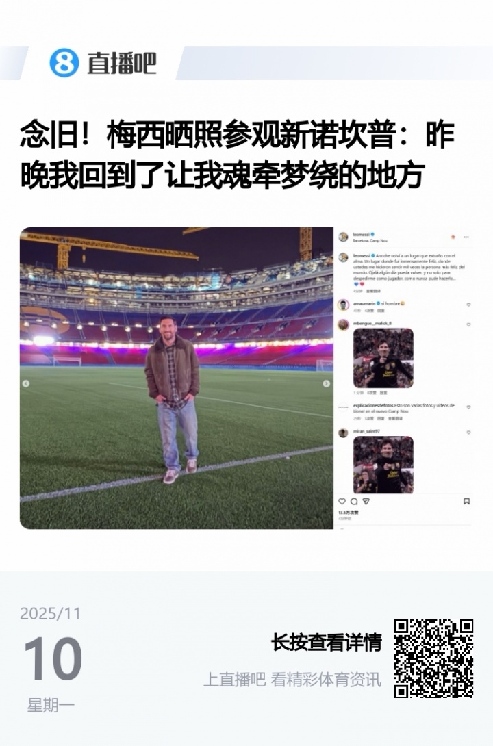 左证梅西最新的社媒,梅西昨晚重返巴塞罗那参不雅了新诺坎普,而据小编查询,迈阿密直飞巴塞罗那的平均时长为9小时,也便是说梅西比赛完就马抑遏蹄地乘上了飞机。