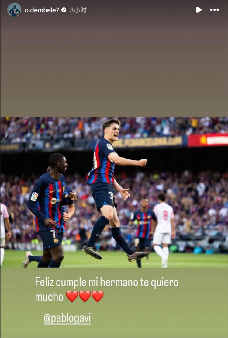登贝莱晒出与加维往日并肩接触的相片,并配文写谈:诞辰炫耀,我的兄弟,我颠倒爱你❤️❤️❤️@加维