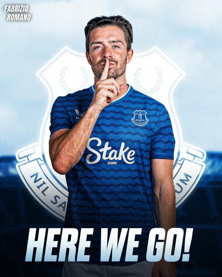 罗马诺写谈:“独家:杰克-格拉利什将加盟埃弗顿,Here we go!埃弗顿与曼城也曾敲定租出左券,今天晚些本领将进行体检。