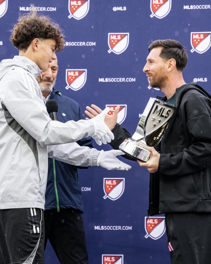 笑得合不拢嘴😁首届梅西杯开幕前,梅西趁便领了个MLS赛季MVP