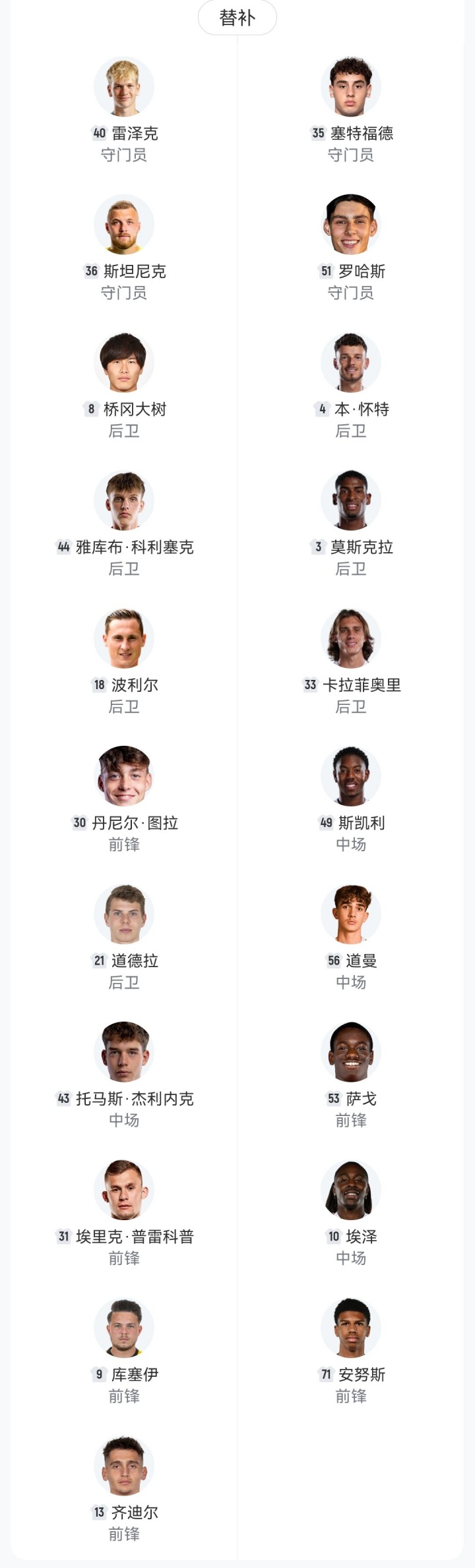 阿森纳本场替补: