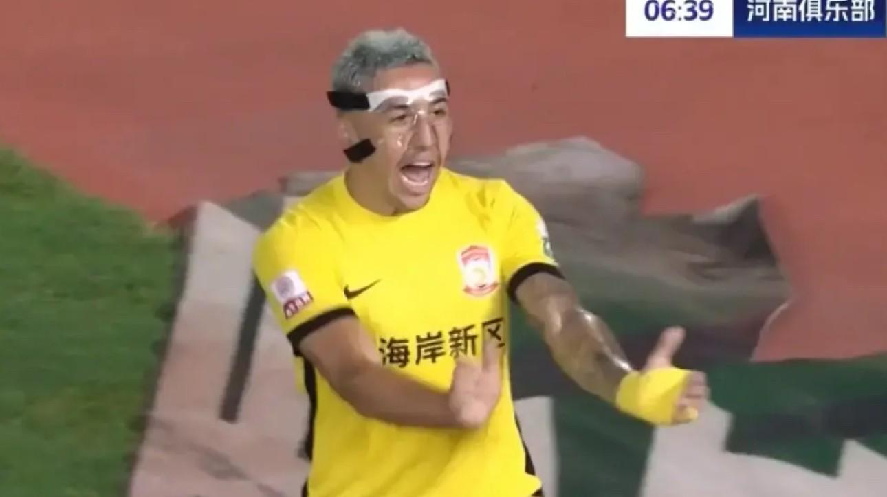 戴维森:“之前对阵北京国安的比赛里,不防卫把鼻子撞伤了,是以戴上头具来保护一下我方。”