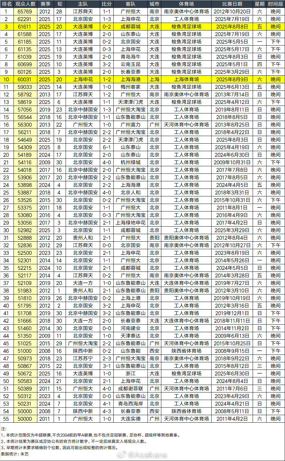 雷速体育10月4日讯 2025中超联赛第23轮补赛,大连英博镇守主场迎战青岛西海岸,本场比赛的上座东说念主数为61616东说念主,这一东说念主数也创下了梭鱼湾足球场上座东说念主数的历史新高,排在中超历史第三位。