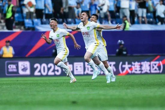 这便是6月21日晚,在大连梭鱼湾领导场足协杯16强比赛中发生的一幕幕,客场作战的北京国安队在伤停补时第91分钟绝平将比赛拖入加时,并在点球大战再次过时的情况下凭借侯森的旋转乾坤,以最终7比6的总比分淘汰大连英博队,干涉足协杯八强。