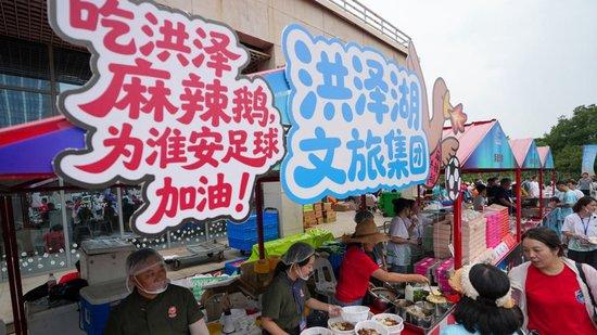 新华社像片,淮安(江苏),2025年6月14日 6月14日,球迷在江苏淮安“苏超”市集品味好意思食特产。 当日,江苏省淮安市以“热诚夏令 乐享足球”为主题,在江苏省城市足球联赛第四轮淮安队对阵南京队比赛本事,在淮安奥体中心相近打造集好意思食体验、购物失业、文娱互动、文化传播为一体的淮安主场比赛配套市集,营造厉害的赛事氛围,普及赛事附加值。 新华社记者 李博 摄
