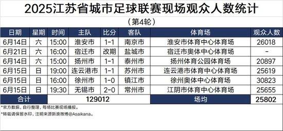 苏超第4轮的场均不雅战东谈主数25802东谈主,致使杰出了本赛季中超场均不雅世东谈主数(24756)。