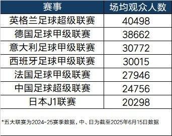 欧洲五大联赛以及中、日处事联赛的场均上座率。